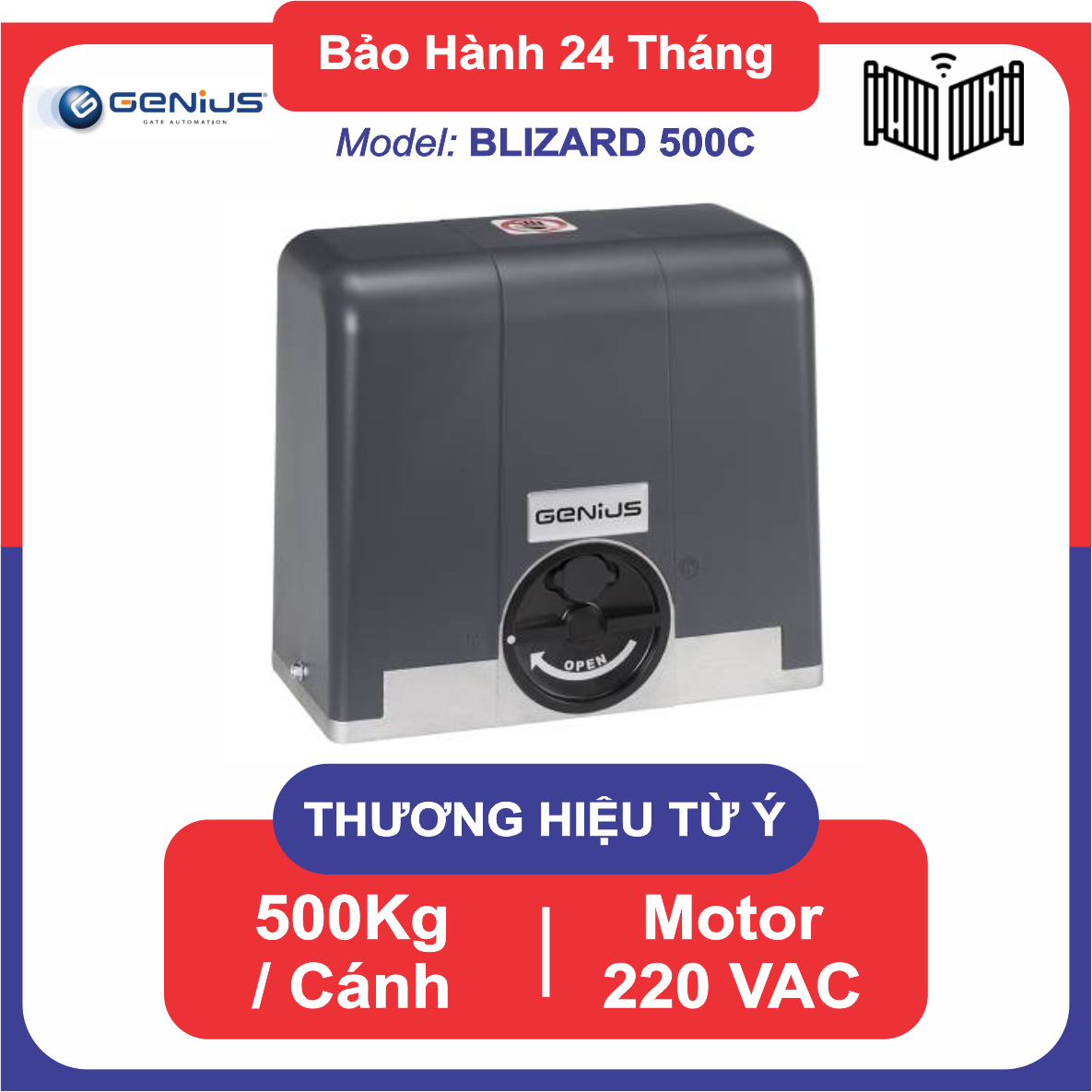 Cổng tự động trượt ngang motor lùa GENIUS BLIZARD 500C