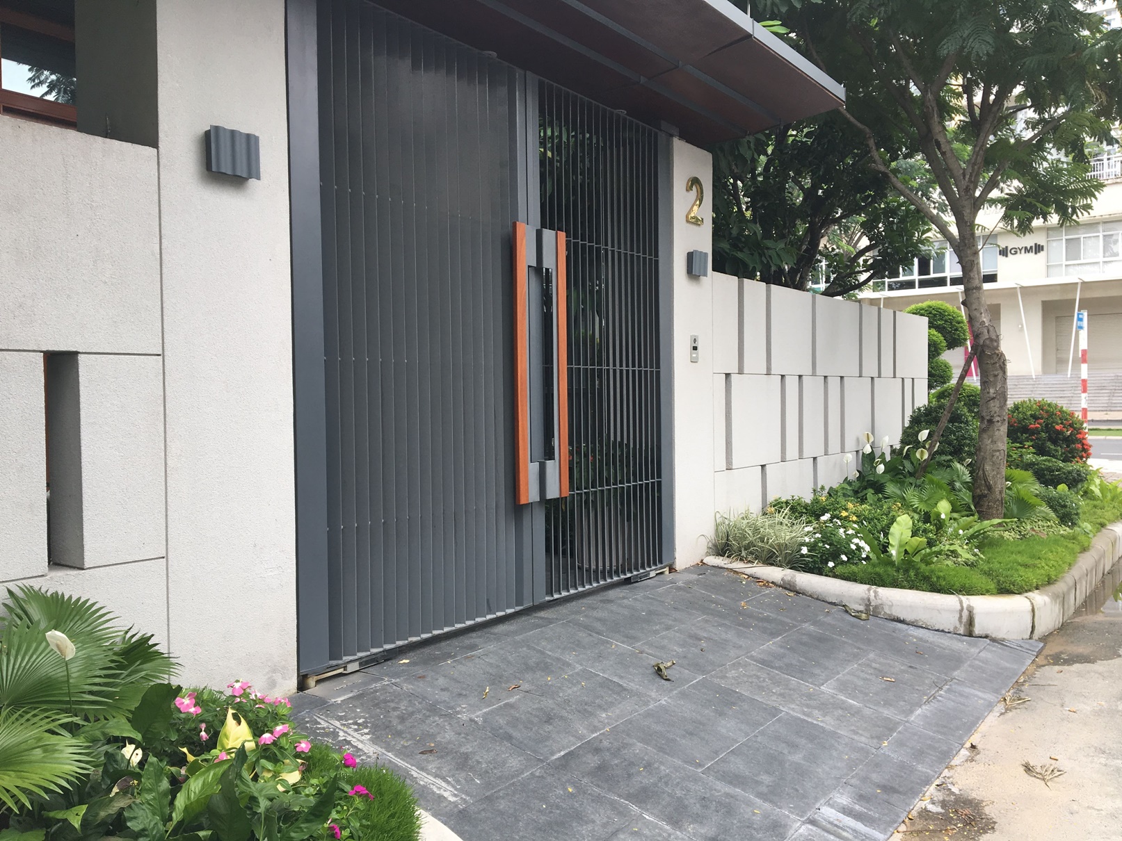 Rose Villa Quận 2 | Cổng tự động âm sàn cho cổng gỗ 2 cánh